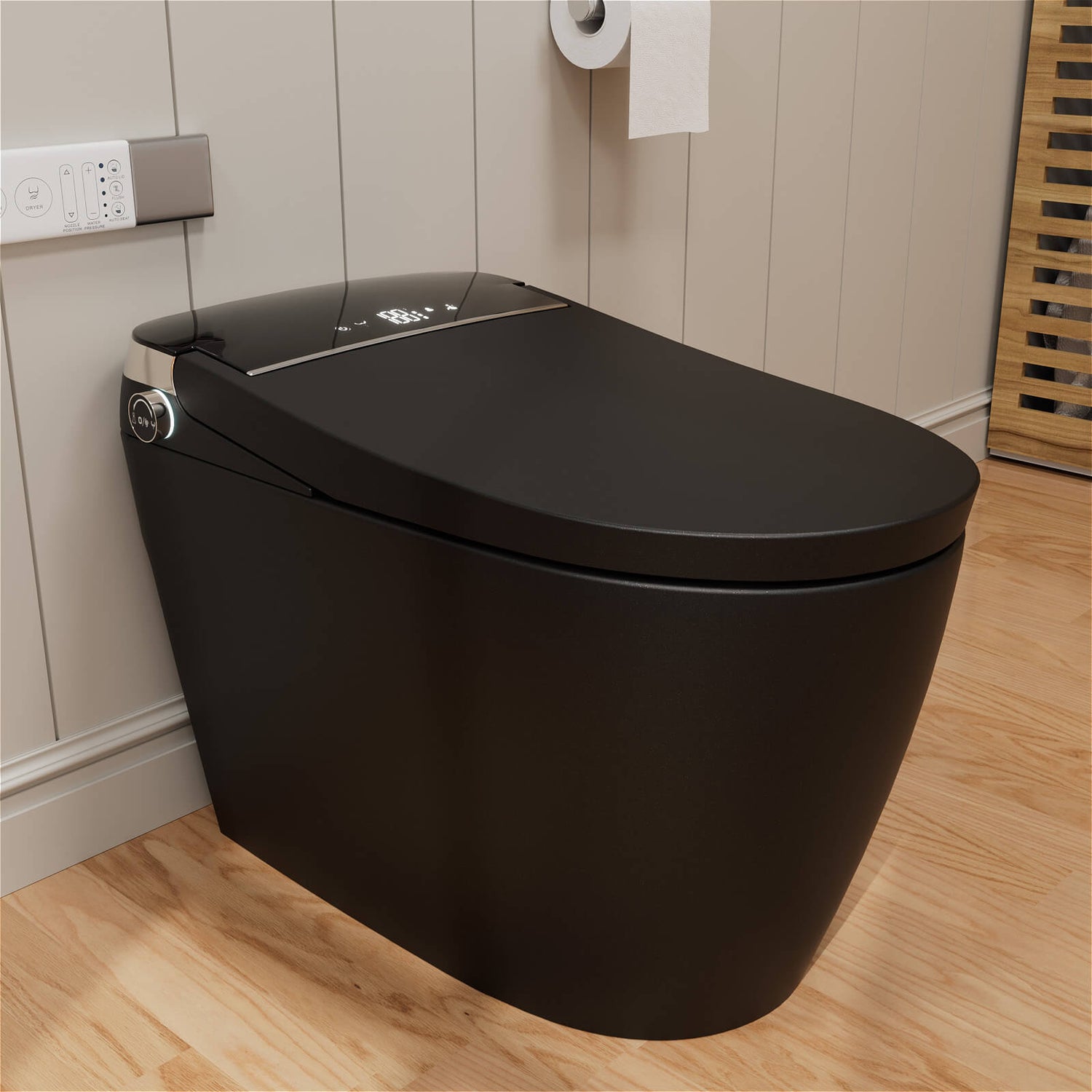 Modern Silent Flushing Smart Bidet Toilet with Built-in Water Tank, LED Light, Remote Control
