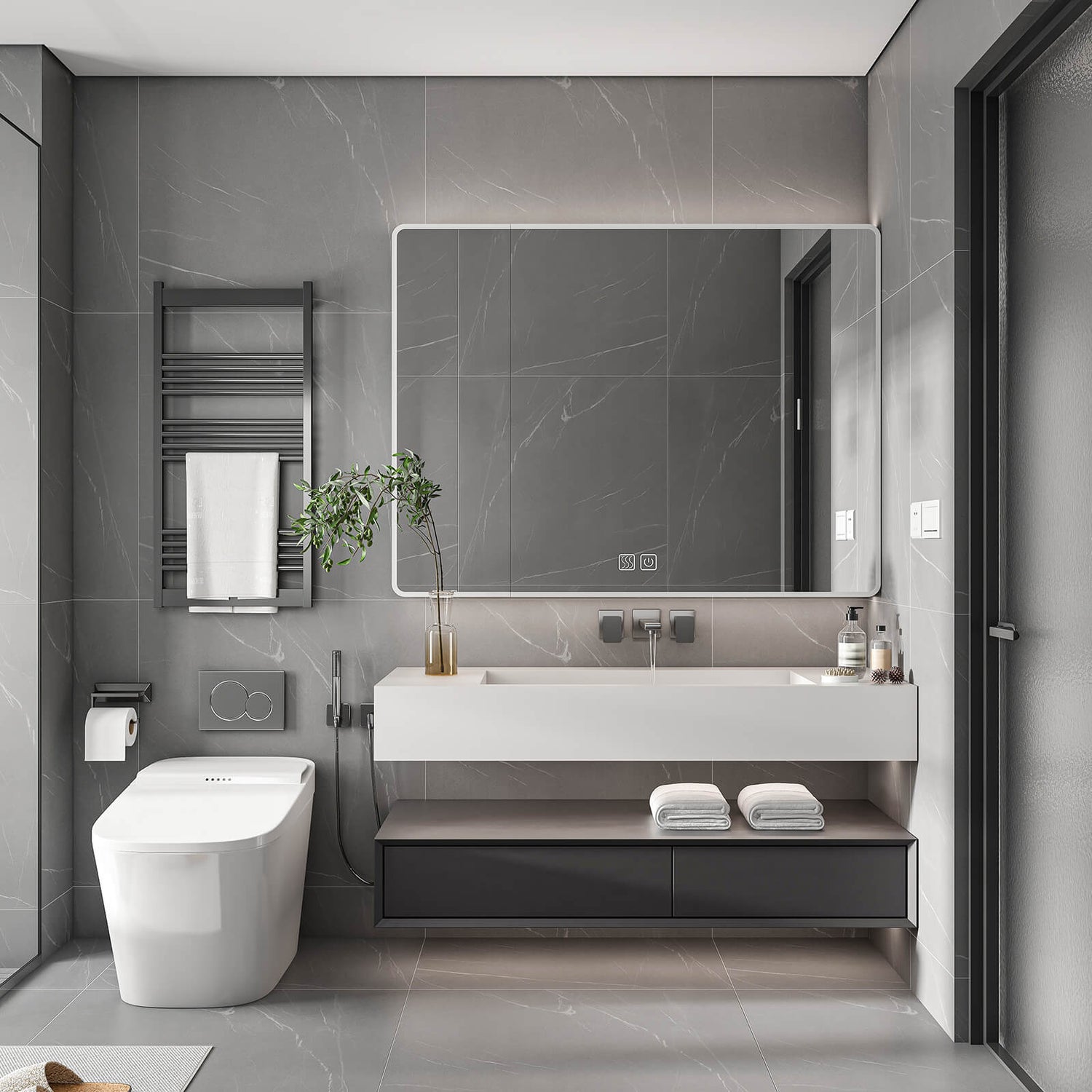 LED Light Bathroom Vanity Mirror Large Rectangular Frameless Anti Fog