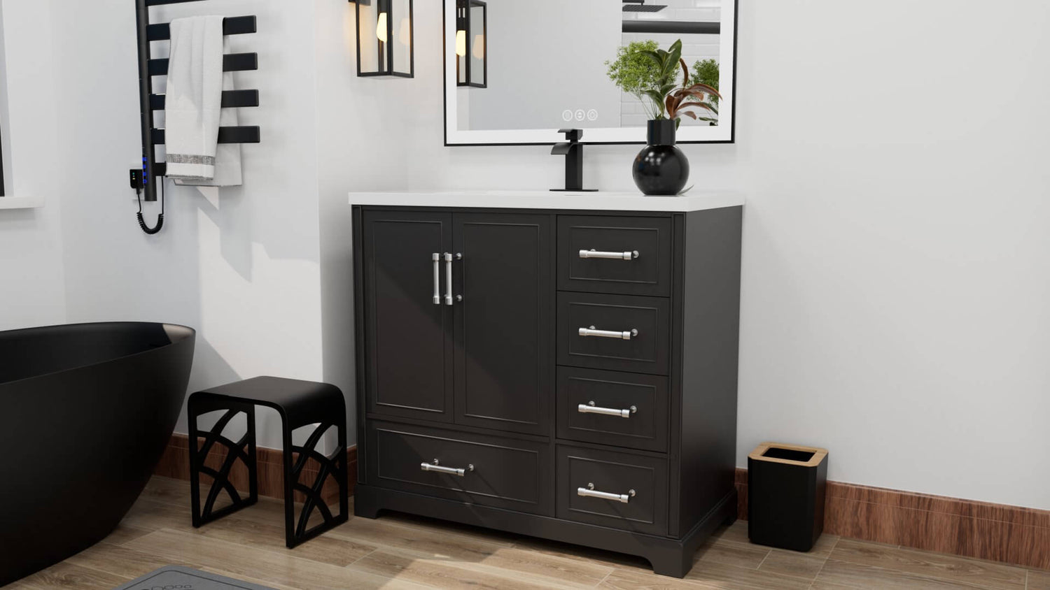 With a variety of finishes, our black vanities adapt to diverse design tastes. Matte finishes bring a sophisticated, minimalist edge, while glossy options add a reflective quality that brightens the room. For those seeking a unique look, our textured finishes add depth, creating visual interest and infusing personality into your bathroom.