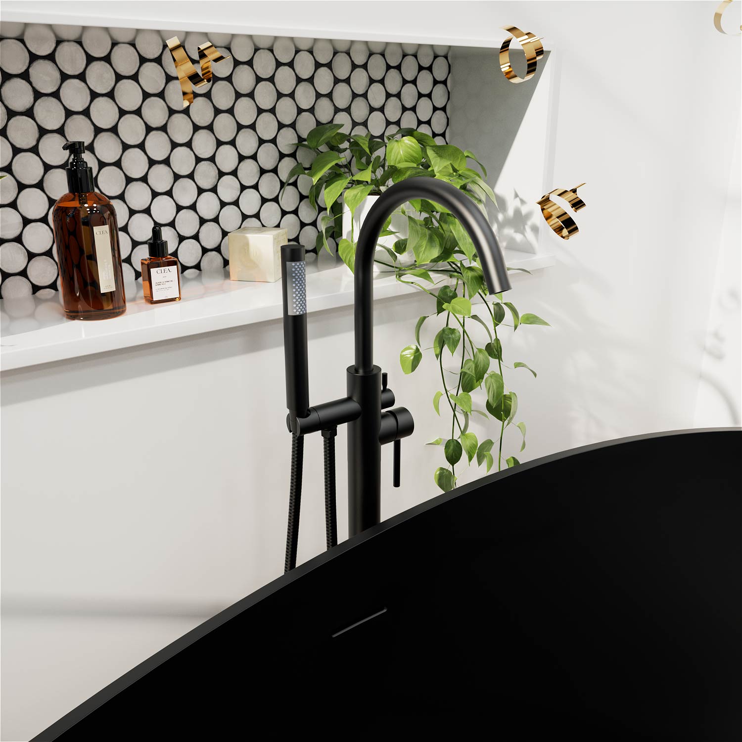 65" Floral Patterned Freestanding Tub with Stone-Inspired Art Finish- Regular price