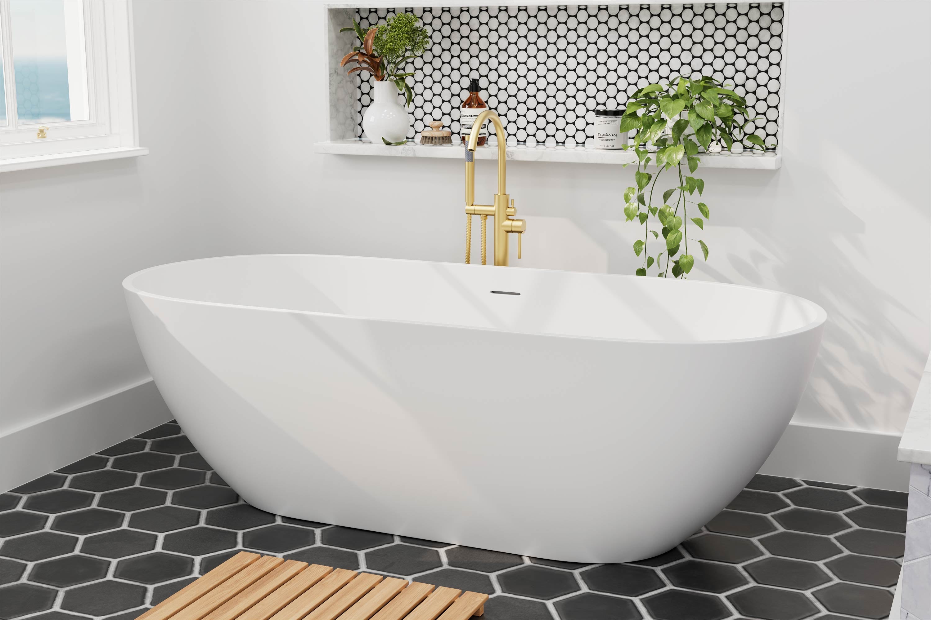 65" Stone Resin Bathtub Oval-shaped Solid Surface Stand Alone Tub with Pop-up Drain- Regular price