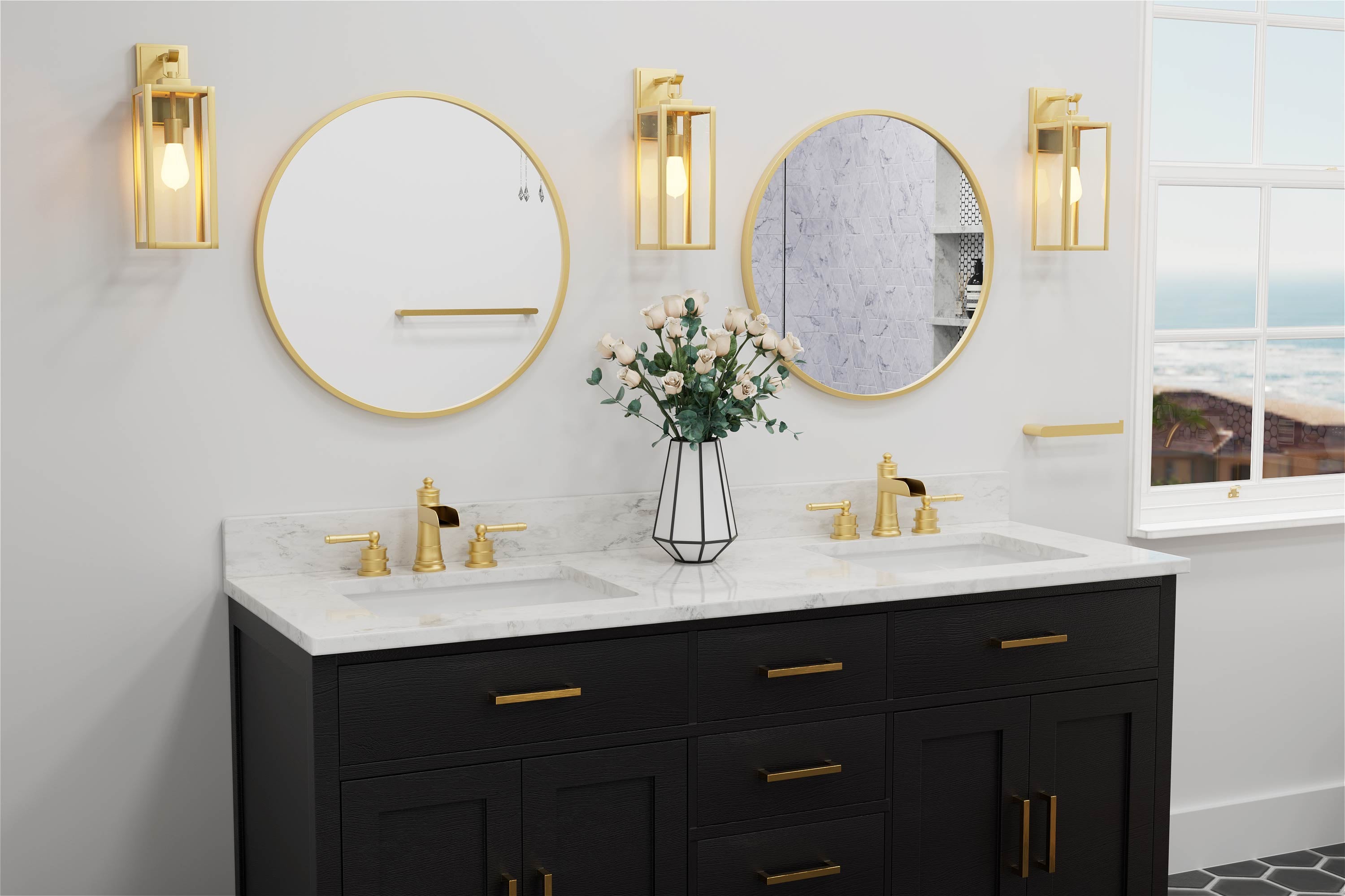 24" Round Gold Border Wall Mirror for Make Up Vanity