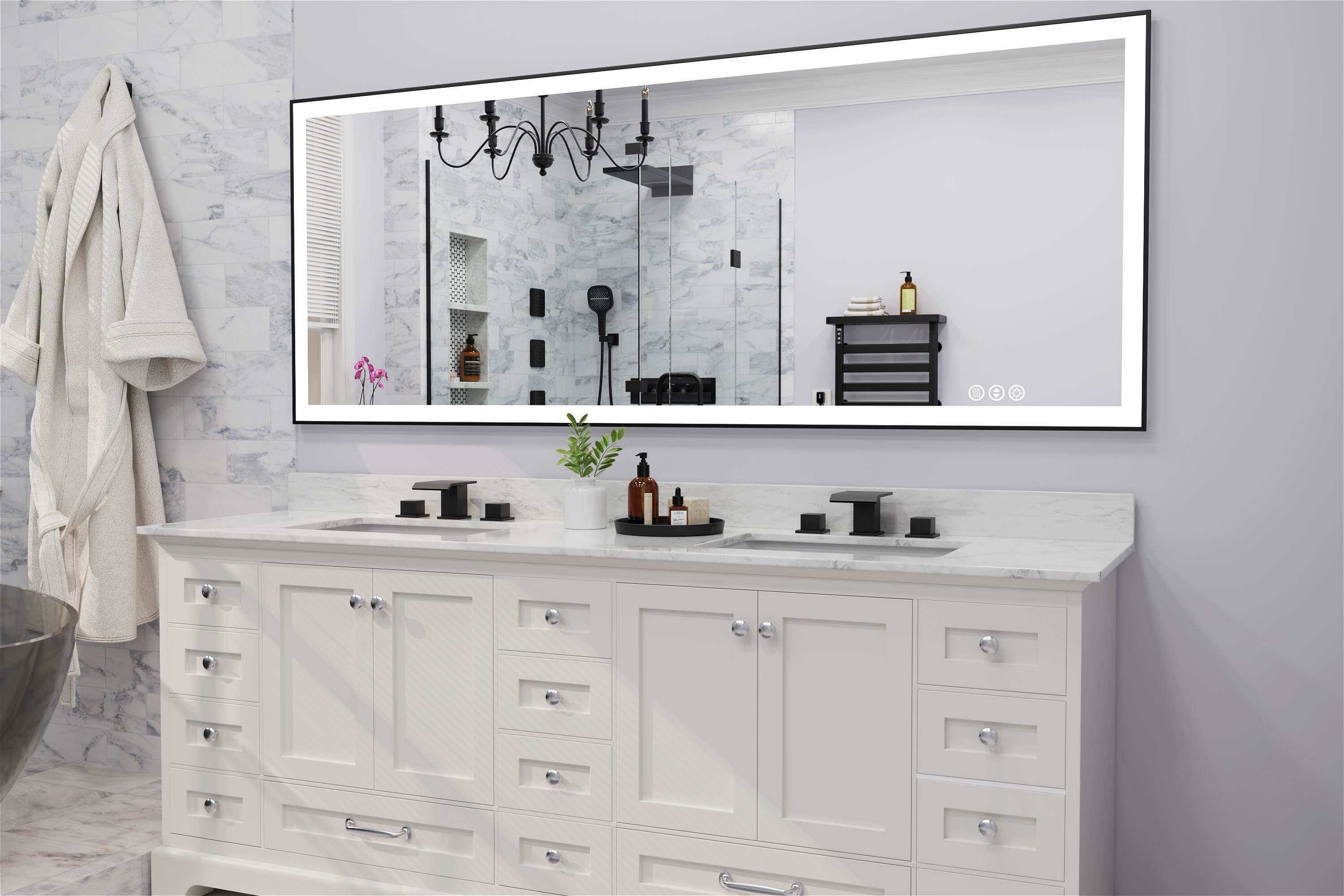 GIVING TREE 60"/72"/84" LED Bathroom Mirror with Black Frame, Anti-Fog, Shatter-Proof, Memory, 3 Colors