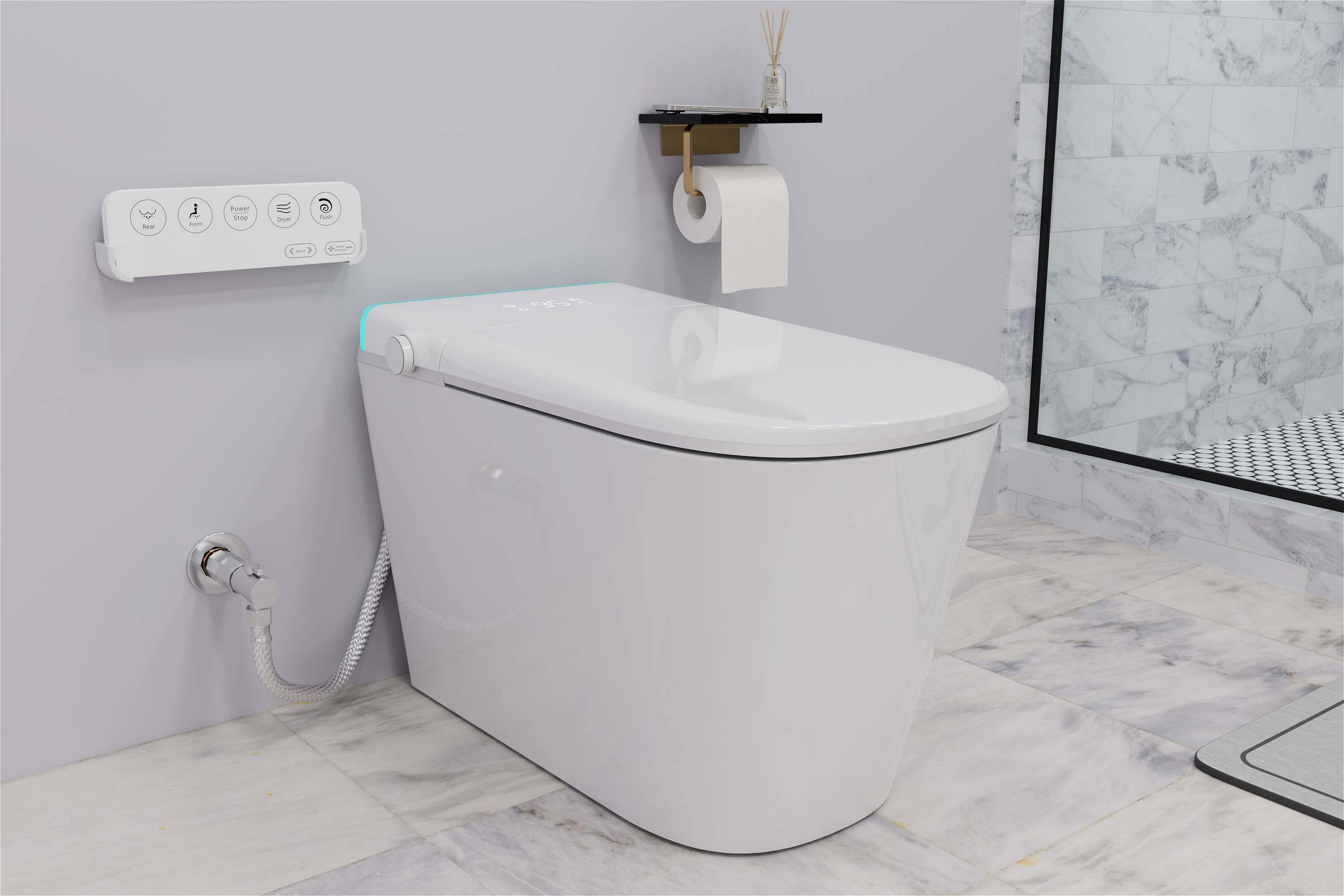 Modern Silent Flushing Smart Bidet Toilet with Built-in Water Tank, LED Light, Remote Control