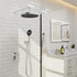 - The electroplating surface is bright and beautiful, and it is not easy to corrode and change color. The shape is stylish, and the top spray and shower make the bathroom style unified.