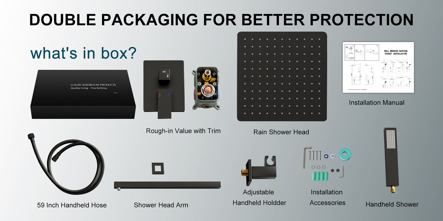 - Brass body and thickened 304 stainless steel panel, brass pressure balanced mixing valve core ensures durability and reliability.