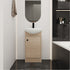 This 18-inch light oak colored bathroom vanity cabinet with oval raised sink top is a practical and chic choice. The warmth of the oak color and the unique design of the oval sink bring comfort and beauty to your bathroom, while the practical storage space keeps your wash area neat and organized. Whether your bathroom is small or large, this vanity cabinet offers convenience and beauty.