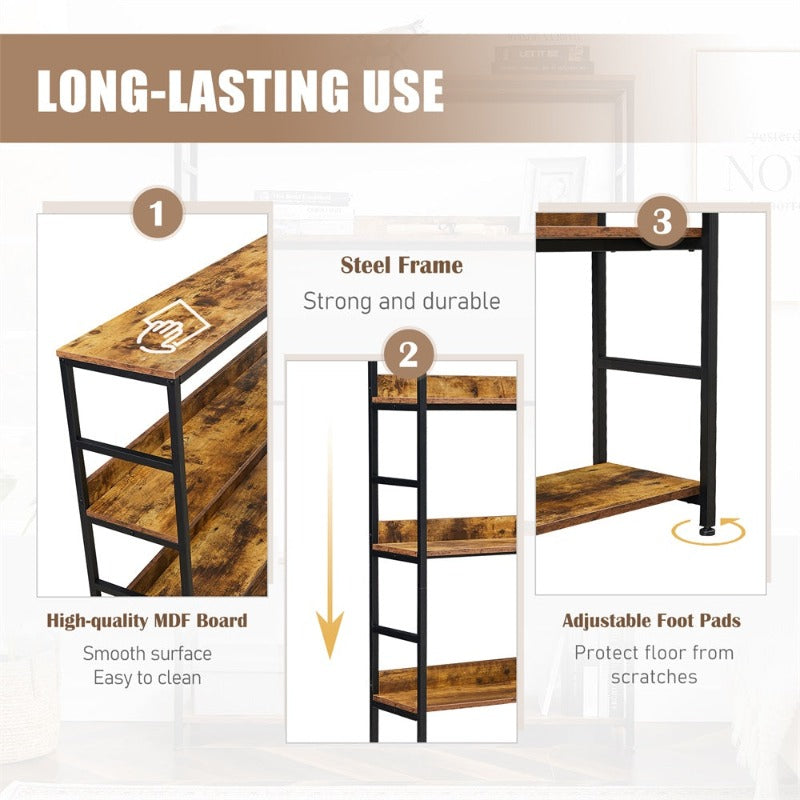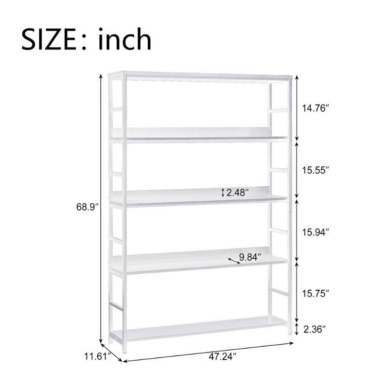 - [Five-tier Shelf Design]: Constructed with MDF board and practical powder-coated steel frame to ensure sturdy and durable, its open design combines the charm of both minimalist and modernism furniture styles. Each shelf is designed with upright panel to prevent things falling off and provides plenty of space to display and storage your books, decorations, plants, and other daily accessories.