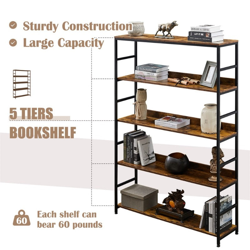 Giving Tree 5 Tier Large Home Office Bookcase Open Bookshelf Storage with Metal Frame