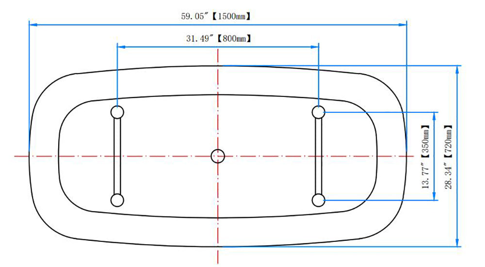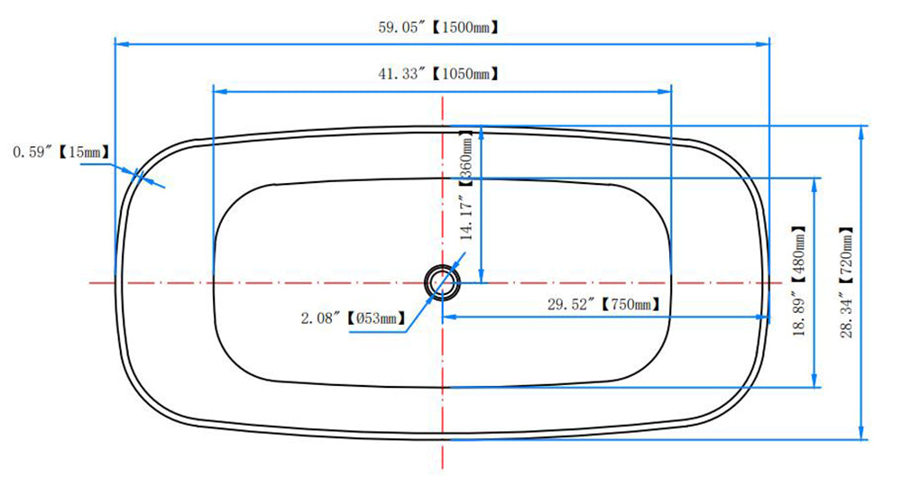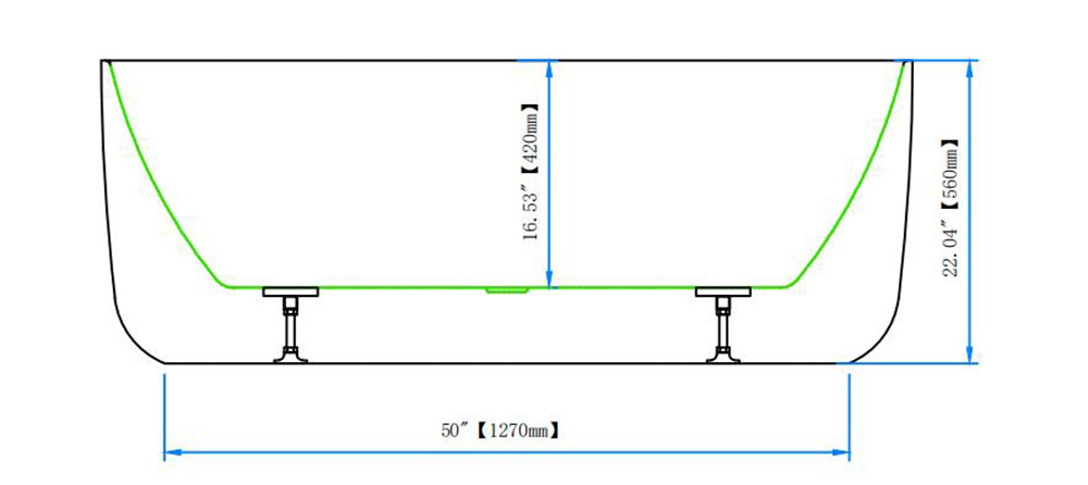 - Interior soaking dimensions: 41.3 in. bottom length x 18.9 in. bottom width x 14.17 in. soaking height