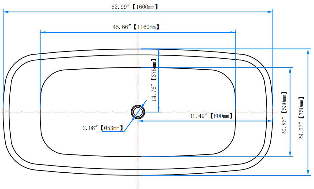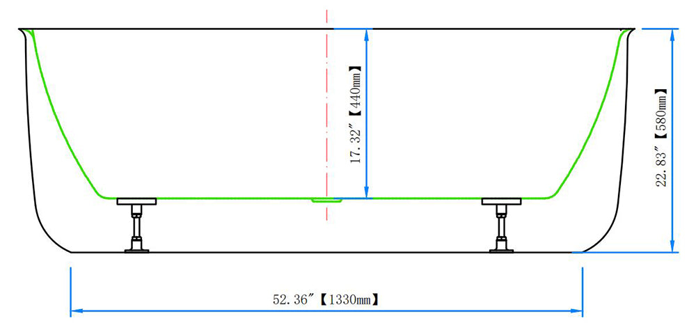 - Interior soaking dimensions: 45.66 in. bottom length x 20.86 in. bottom width x 14.96 in. soaking depth.
