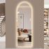 This 65-inch by 21-inch arched LED wall mirror is designed for both style and practical daily use in your bathroom, makeup area, or home gym. It features a high-clarity, 5mm copper-free silver glass that provides a bright, accurate reflection. You can easily customize your lighting with three color temperatures and stepless dimming, from a soft glow for relaxing to full brightness for detailed tasks like shaving or applying makeup. Built for safety and durability, it has a shatterproof glass backing to contain fragments if impacted and a special moisture-resistant treatment to prevent fogging, discoloration, and corrosion in humid environments. The complete mounting kit offers a secure installation, and it provides two power options: a standard plug-in for convenience or a hardwired connection for a seamless, built-in look.