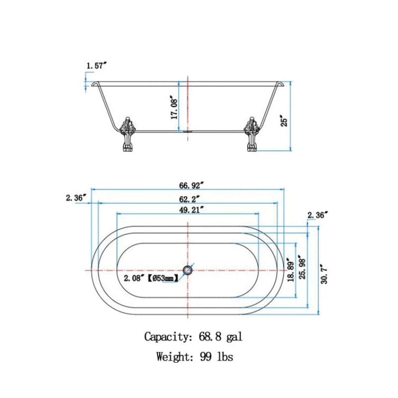 Unique patent of leak-proof design drainage system certified by IAPMO: 100% glossy white acrylic reinforced with fiberglass for long-lasting durability.High quality material, can adjust the foot to stabilize the bathtub and nylon material prevent slip.All our Mokleba bathtubs are cUPC certified as mandated by the U.S. Federal Government that ensures protection to your health and safety.